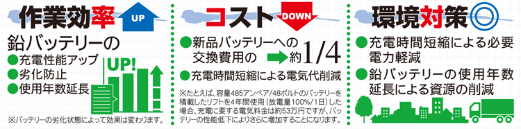 ・新バッテリへの交換コスト対比で約1/4